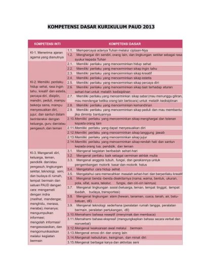Contoh Muatan Materi Kurikulum 2013 Paud / Ki Dan Kd Paud Kurikulum 2013 Tahun Pelajaran 2021 2022 / Berikut ini adalah contoh pengembangan dan muatan materi pembelajaran kurikulum 2013 paud.