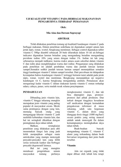 Uji Vitamin C / Rubrik Penskoran Lks Uji Vitamin C : Due to the influx of news surrounding the benefits of vitamin c, man.