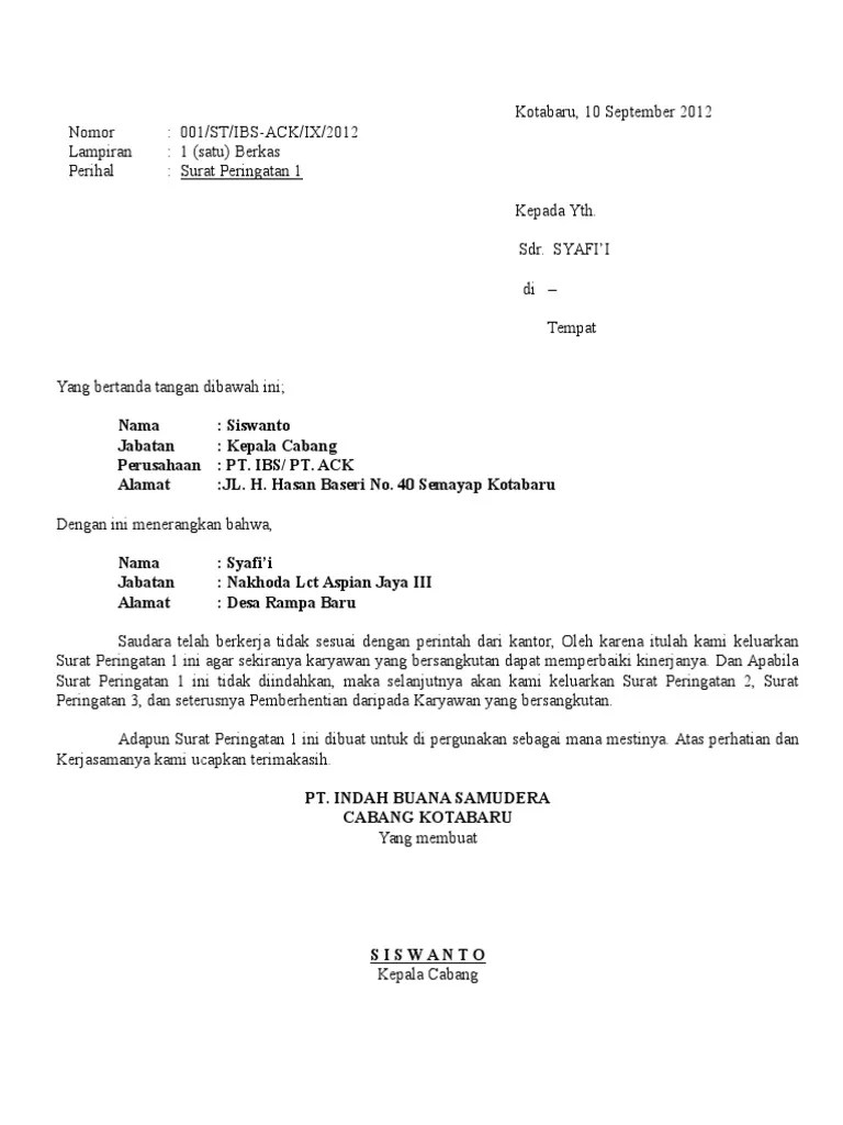 Dalam contoh surat teguran berikut ini akan terlihat bahwa setiap perusahaan sangat tegas untuk menegakkan kedisplinan kerja. Karena merupakan salah satu surat resmi, struktur surat peringatan juga sama seperti surat resmi lainnya, yaitu:. Format doc melalui link download di bawah ini. Dapatkan contoh surat peringatan resmi untuk berbagai. Surat seringkali digunakan sebagai sarana komunikasi resmi kepada orang lain misalnya atasan di kantor atau rekan bisnis.